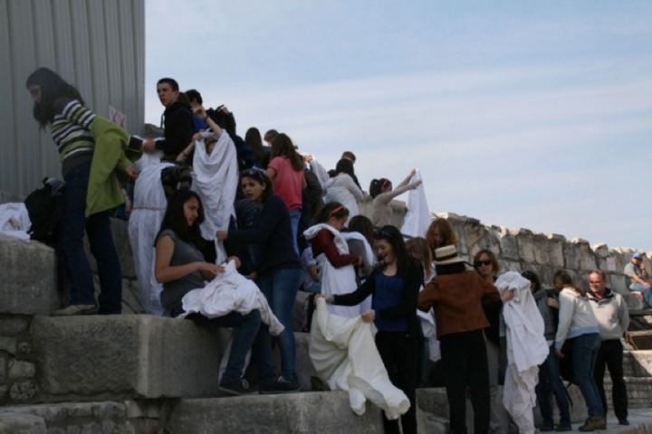Préparatif de la METAMORPHOSE en romains et romaines … aie !! les épingles à nourrice, pas facile !