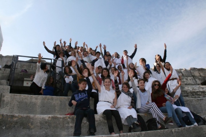 mais … un point de vue magnifique de la ville de Nîmes derrière les élèves ;-)