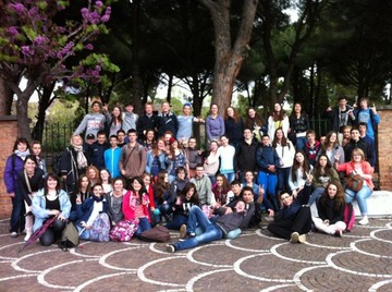 Photo de groupe après la découverte de Pompei ... Un peu de pluie (vive les parapluies pliants !!), un peu de soleil (pour les photos !).