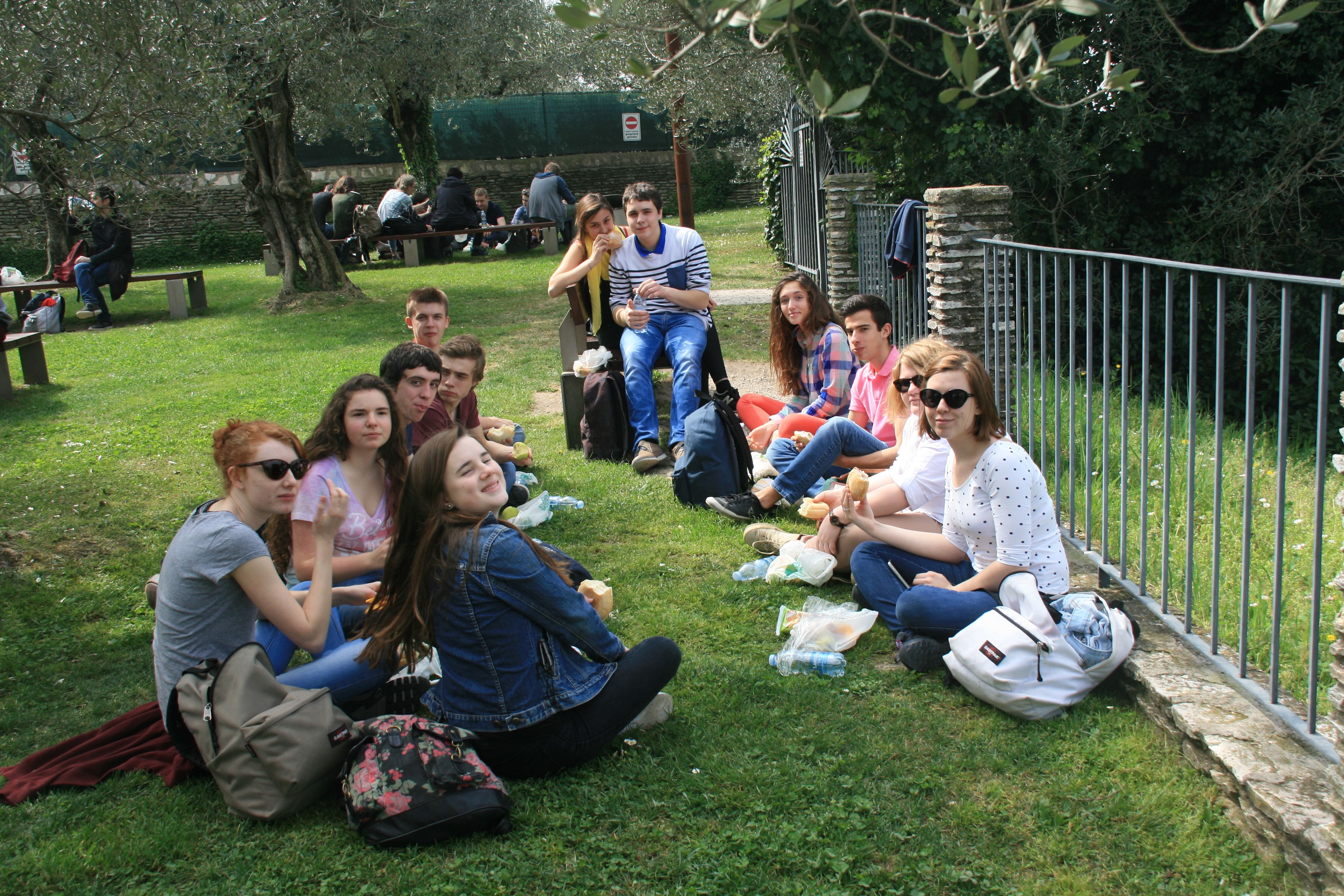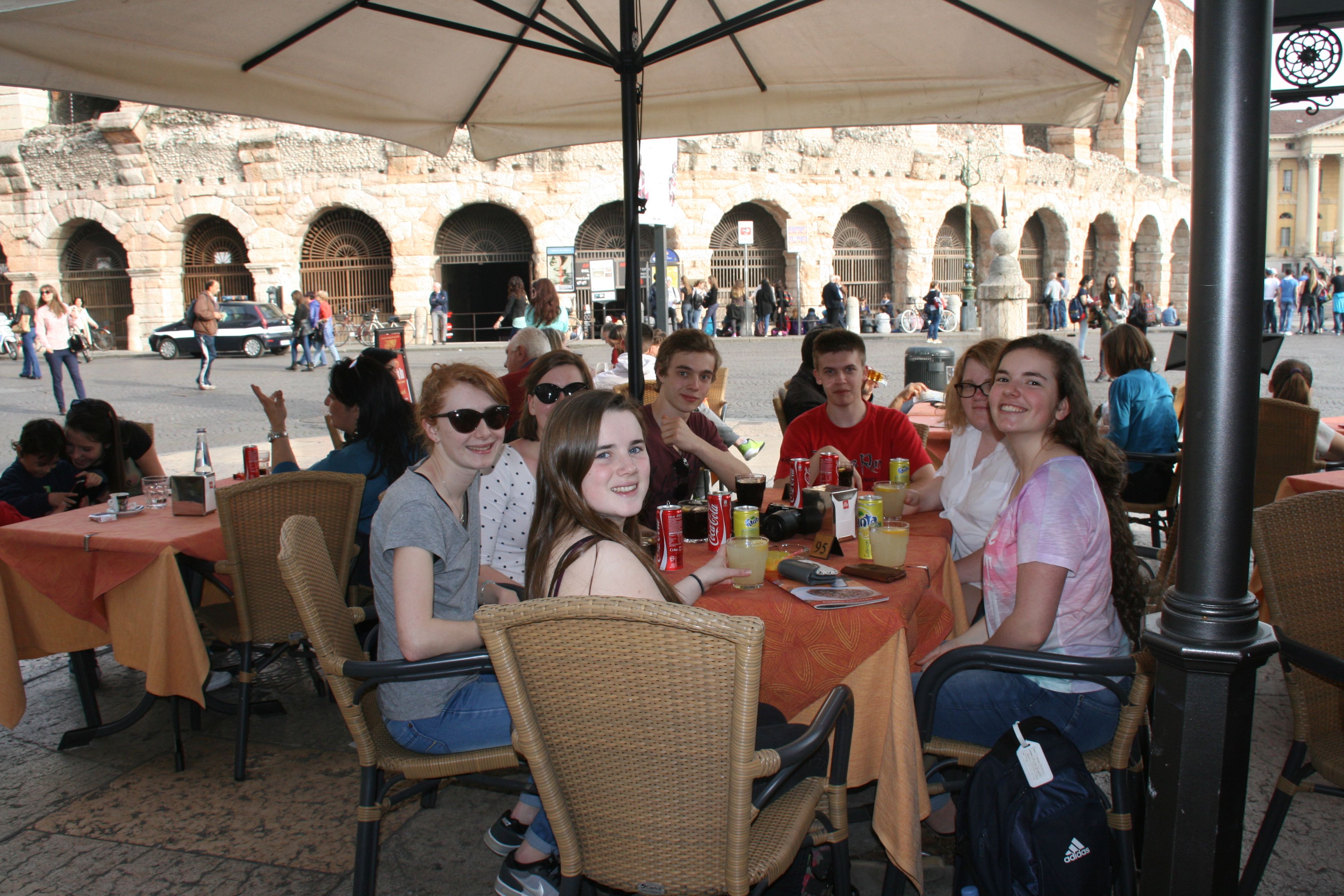 A l’extérieur de l’amphithéâtre, nos élèves de seconde sont prêtes à partir découvrir la ville des amoureux…