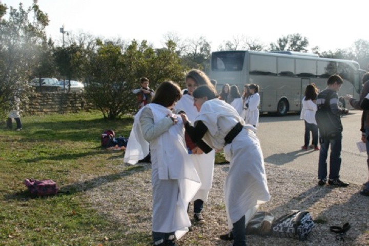 Préparatif de la METAMORPHOSE en romains et romaines … aie !! les épingles à nourrice, pas facile !