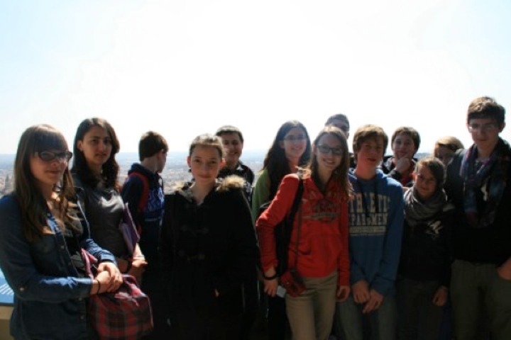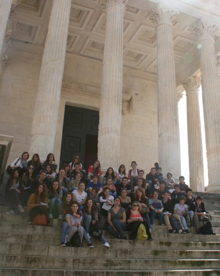 mais … un point de vue magnifique de la ville de Nîmes derrière les élèves ;-)