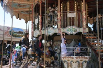 Seconde étape (moins sérieuse !) : les Saintes Maries de la mer…. Baignade (ou presque !), manège (si si !) et les incontournables séances photos !!!