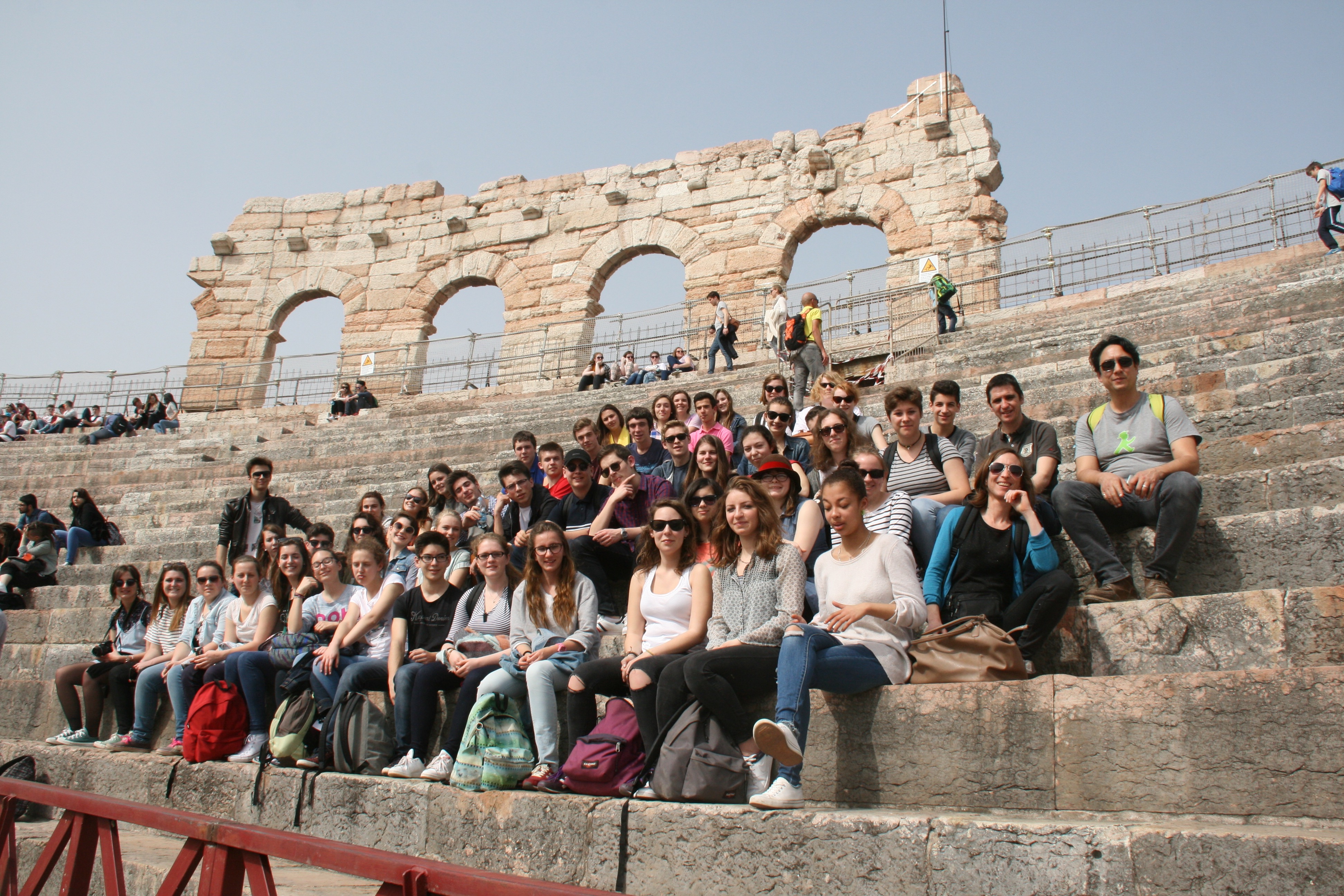 A l’extérieur de l’amphithéâtre, nos élèves de seconde sont prêtes à partir découvrir la ville des amoureux…